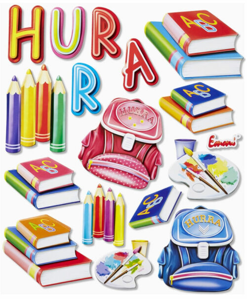 Wandsticker aus Kunststoff und Papier in 3D-Optik für glatten Untergrund wie Wand, Schränke und zum Schul oder Zuckertüte basteln