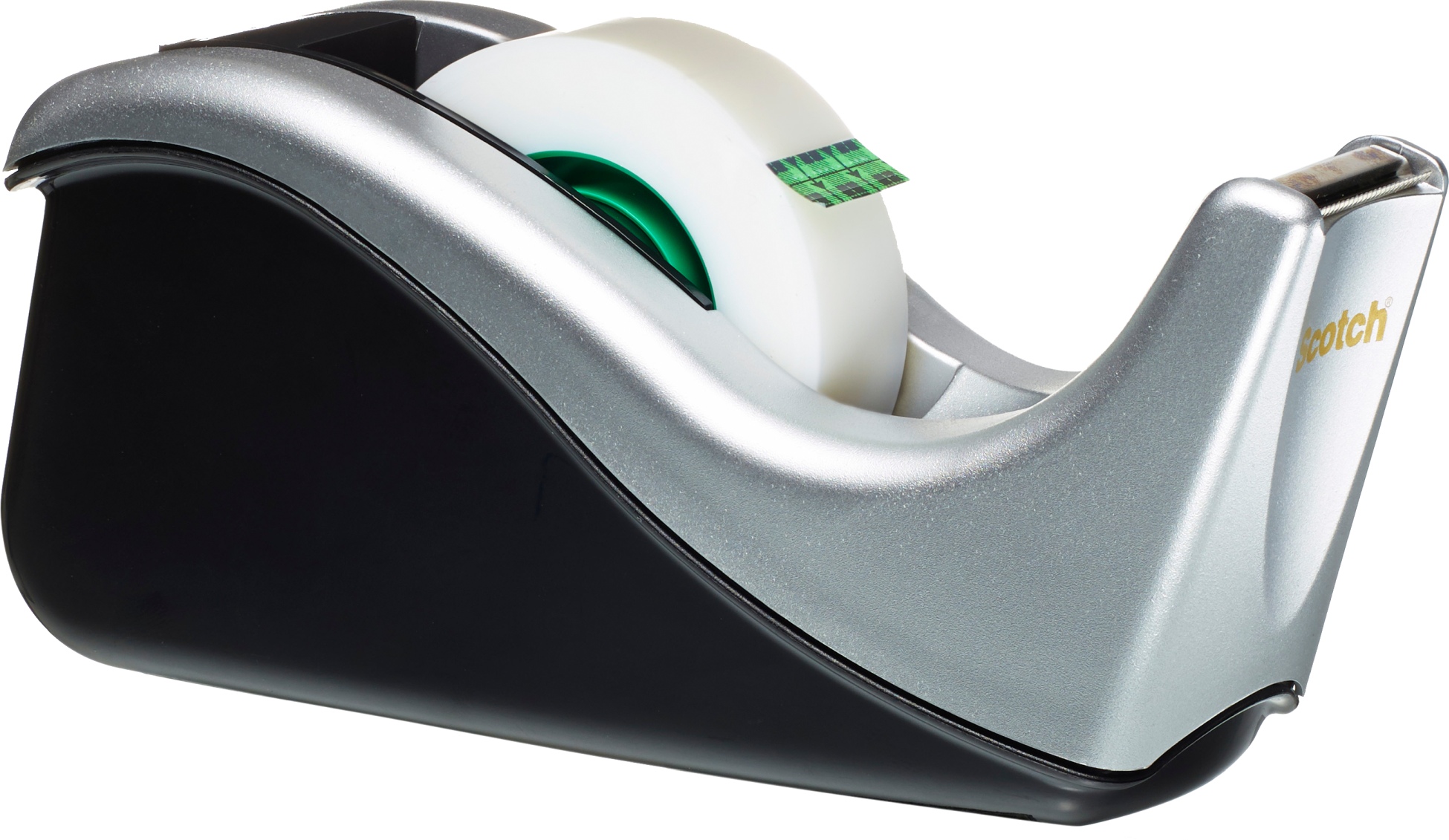 Scotch® Tischabroller C60 für 10 m und 33 m Bandlänge, Rollenbreite bis 19 mm, besonders stabil und bestens geeignet für bequemes Abrollen mit einer Hand. silber/schwarz inkl. 1 Rolle Scotch® Magic(TM) 810 19 mm x 33 m