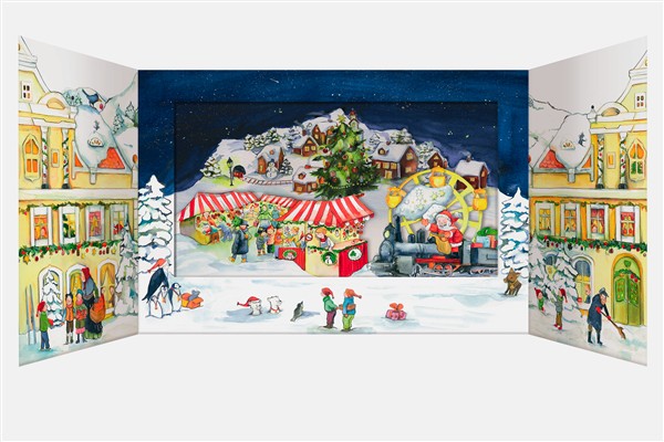 Pop-Up-Adventskalender zum Aufstellen Mit Glimmer, konturgestanzt