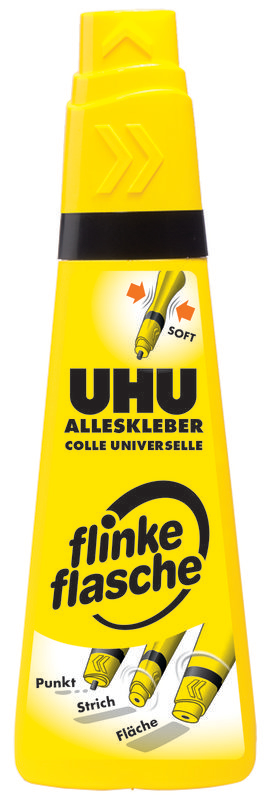 UHU® Alleskleber flinke flasche mit Klebekopf für Punkt-, Strich- und Flächenkleben, auswaschbar bei 60°C. 90 g