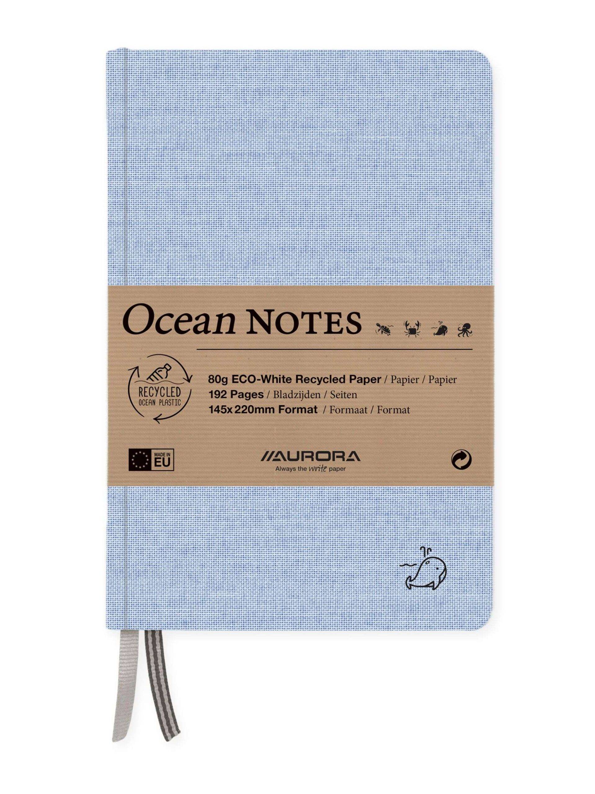 Mit Ocean Notes bietet Ihnen Aurora Upcycling-Techniken vom Feinsten. Der Umschlag mit Leinen-Optik ist aus recyceltem Meerplastik. Beim Papier entschieden wir uns ganz bewusst für helles Recyclingpapier. Damit beweisen wir, dass Nachhaltigkeit auch ohne erhobenen Zeigefinger geht. Gutes tun schliesst den Zoll,FunFactorZoll, nicht aus. Im Gegenteil! Alle Notizblockfarben verfügen neben anderen coolen Details zudem über ein individuelles Meerestiersymbol. Ocean Notes ist nicht einfach nur ein Notizblock, sondern ein Symbol für positive Veränderungen. MachenSie mit?