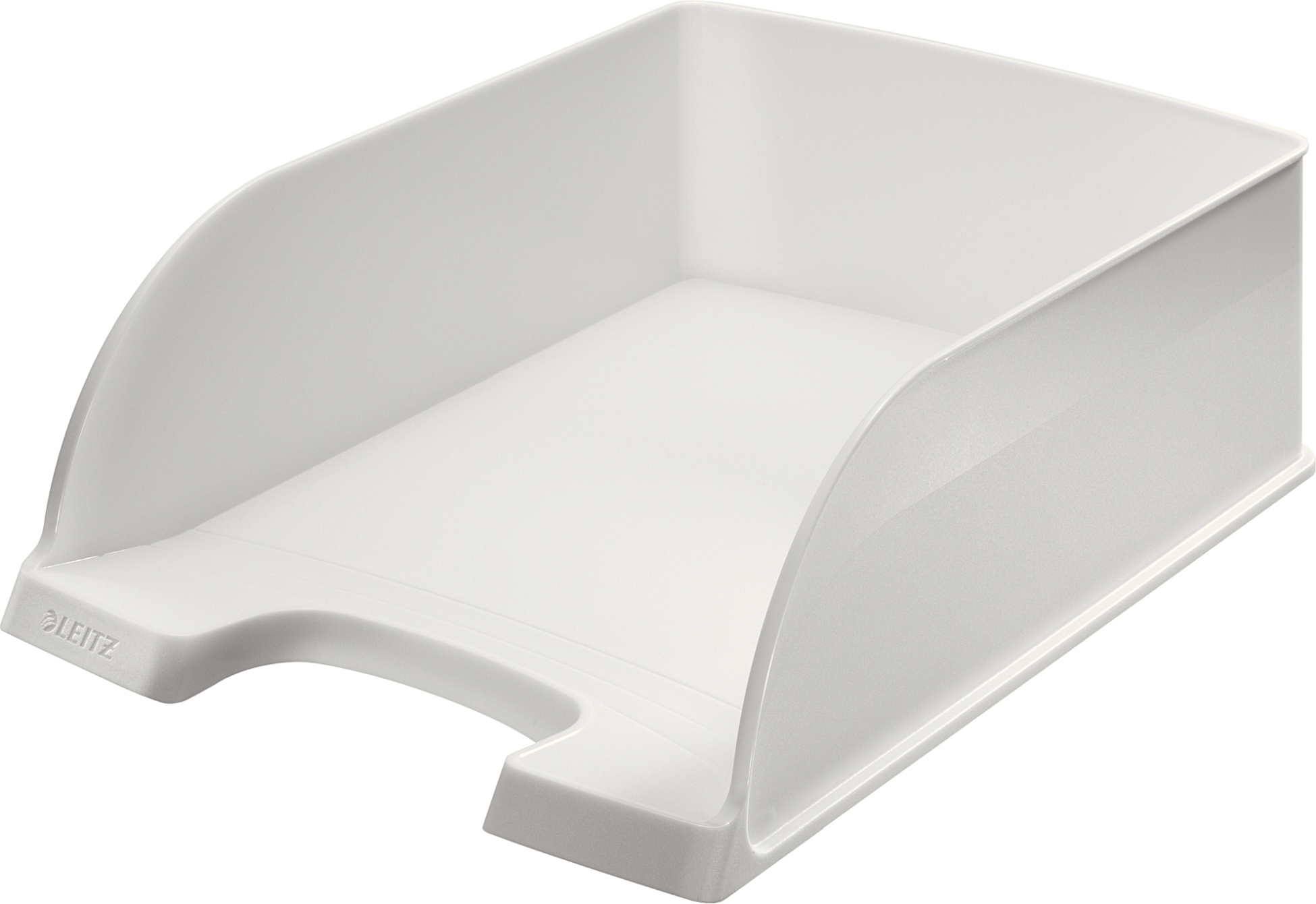 LEITZ® Briefkorb Plus aus PS, senkrecht oder versetzt stapelbar, speziell für eine übersichtliche Dokumentensortierung, für Format A4/C4. Jumbo Masse: B 255 x H 103 x T 357 mm. weiss