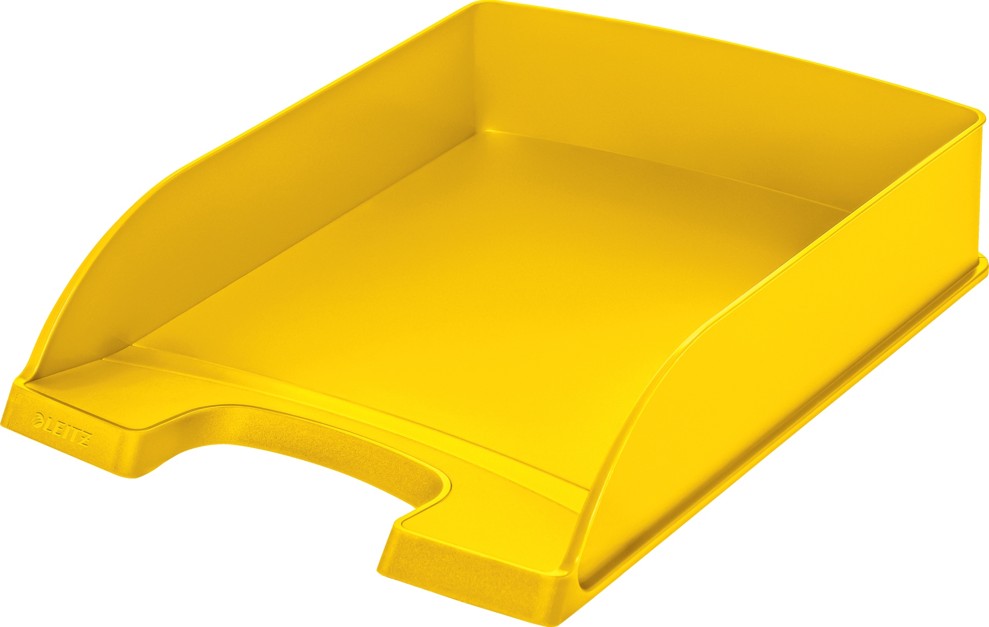 LEITZ® Briefkorb Plus aus PS, senkrecht oder versetzt stapelbar, speziell für eine übersichtliche Dokumentensortierung, für Format A4/C4. Standard Masse: B 255 x H 70 x T 357 mm. gelb