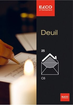 ELCO Trauer-Briefumschläge Deuil weiss mit schwarzer Linie, schwarz gefüttert, 100 g/m2, Haftklebeverschluss. Cello-zip zu 25 Stück. Nachhaltigkeit eco:plus: recyclingfähig. Zertifikat: FSC. C6
