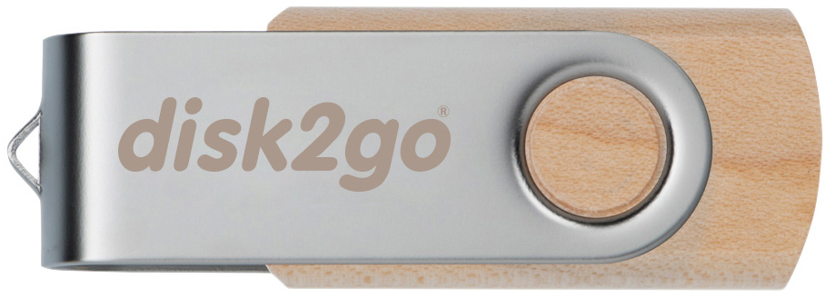 Gut geschützt durch die Verschlusskappe mit raffiniertem Drehverschluss, überzeugt der disk2go WOOD mit seinem natürilch eleganten Holzgehäuse. Die Kappe ist aus matt gekörntem Aluminium.