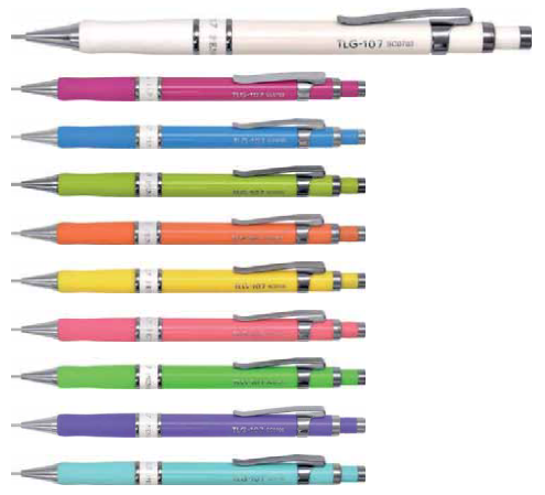 Ergonomische Gummigriffzone, feststehende 4 mm Spitze, PVC- & latexfreier Drehradiergummi. Minenstärke 0.7 mm, Mine nachfüllbar. Verfügbar in 10 verschiedenen Korpusfarben