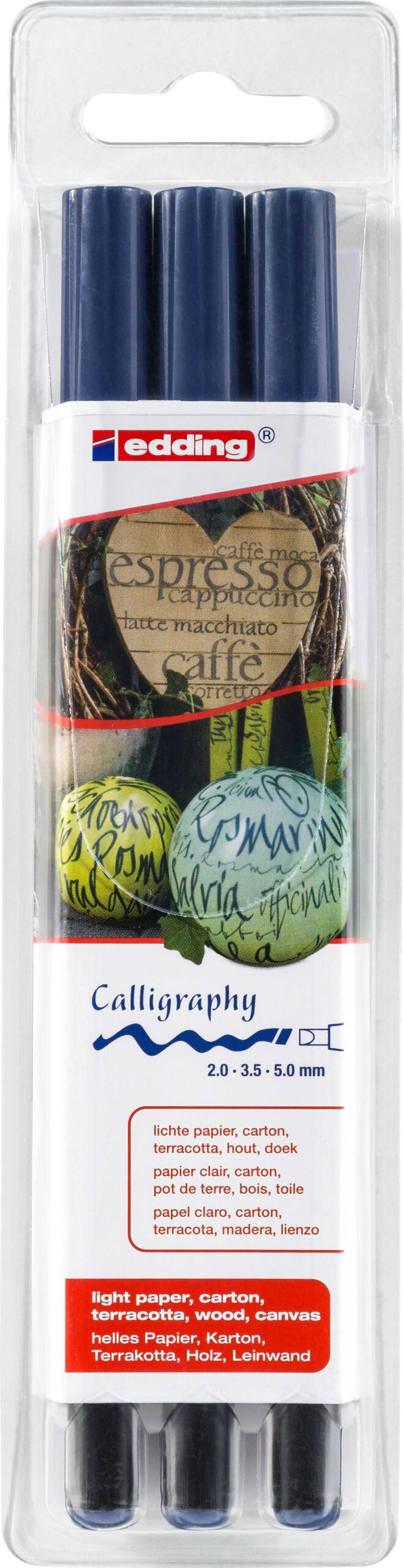 Kalligrafiespitze, pigmentierte Tinte auf Wasserbasis, lichtbeständig, wisch- und wasserfest, schnelltrocknend, für schönes Schreiben auf fast allen Oberflächen, z. B. Terrakotta, Holz, Papier oder Leinwand, nicht nachfüllbar. Nachhaltigkeit eco:plus: recyclingfähig.