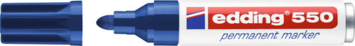 EDDING® Permanent Marker 550 Rundspitze, Spitze auswechselbar, Aluminiumschaft, lichtbeständig, wisch- und wasserfest, ohne Zusatz von Toluol/Xylol, nachfüllbar, Strichbreite ca. 3 – 4 mm. Nachhaltigkeit eco:plus: verlängertes Produktleben, recyclingfähig. blau