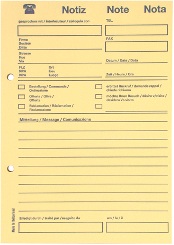 Der vorgeschriebene Telefonblock ist ideal für Notizen während eines Gesprächs, welche anschliessend ohne Aufwand weitergereicht werden können.