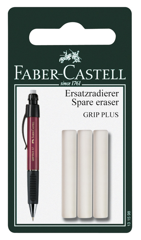 FABER-CASTELL Ersatzradierer für Druckbleistifte PVC-frei. Blister zu 3 Stück. zu Grip Plus