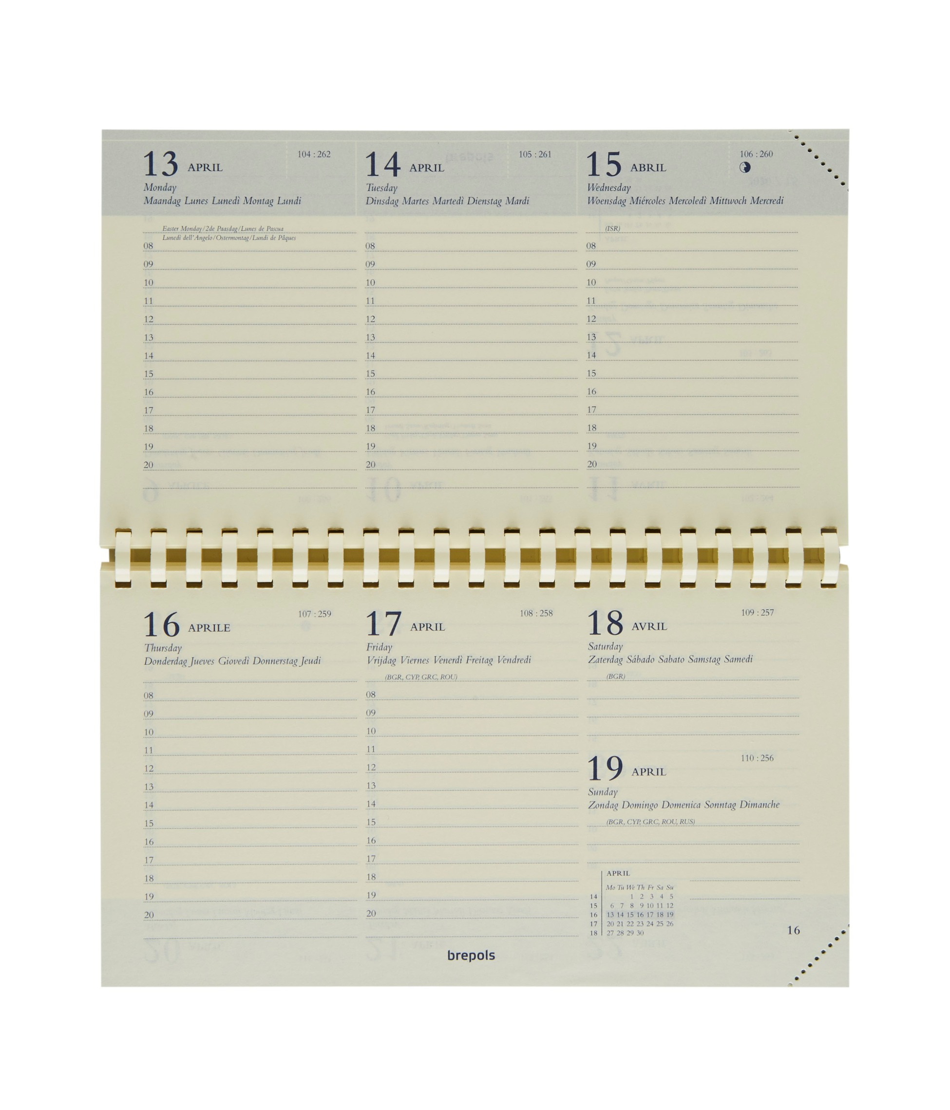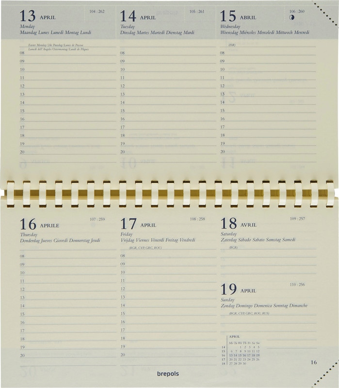 BREPOLS(TM) Planer Omniplan 738 1 Woche auf 2 Seiten, Kalendarium sechssprachig d/f/i/gb/sp/nl, querliniert, Stunden-Einteilung (08.00 – 20.00 Uhr), Doppelseite mit Monatsübersicht, Eckenperforation, Adressenregister, Atlas mit 16 Seiten, Wire-O-Bindung, Format 16 x 9 cm. Nachhaltigkeit eco:plus: Zertifikat: FSC. Ersatzkalender Jahrgang 2026
