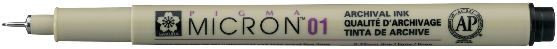 SAKURA® Faserschreiber Pigma Micron für genaues Zeichnen und Skizzieren, lichtechte, schnell trocknende, wasserbeständige Pigmenttusche, auch für Lineale und Schablonen geeignet, mit Metallclip, nicht nachfüllbar. Artikel Strichbreite Farbe 01 0,25 mm schwarz
