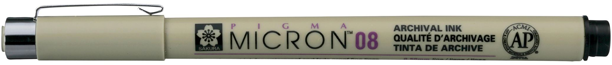 SAKURA® Faserschreiber Pigma Micron für genaues Zeichnen und Skizzieren, lichtechte, schnell trocknende, wasserbeständige Pigmenttusche, auch für Lineale und Schablonen geeignet, mit Metallclip, nicht nachfüllbar. Artikel Strichbreite Farbe 08 0,5 mm schwarz
