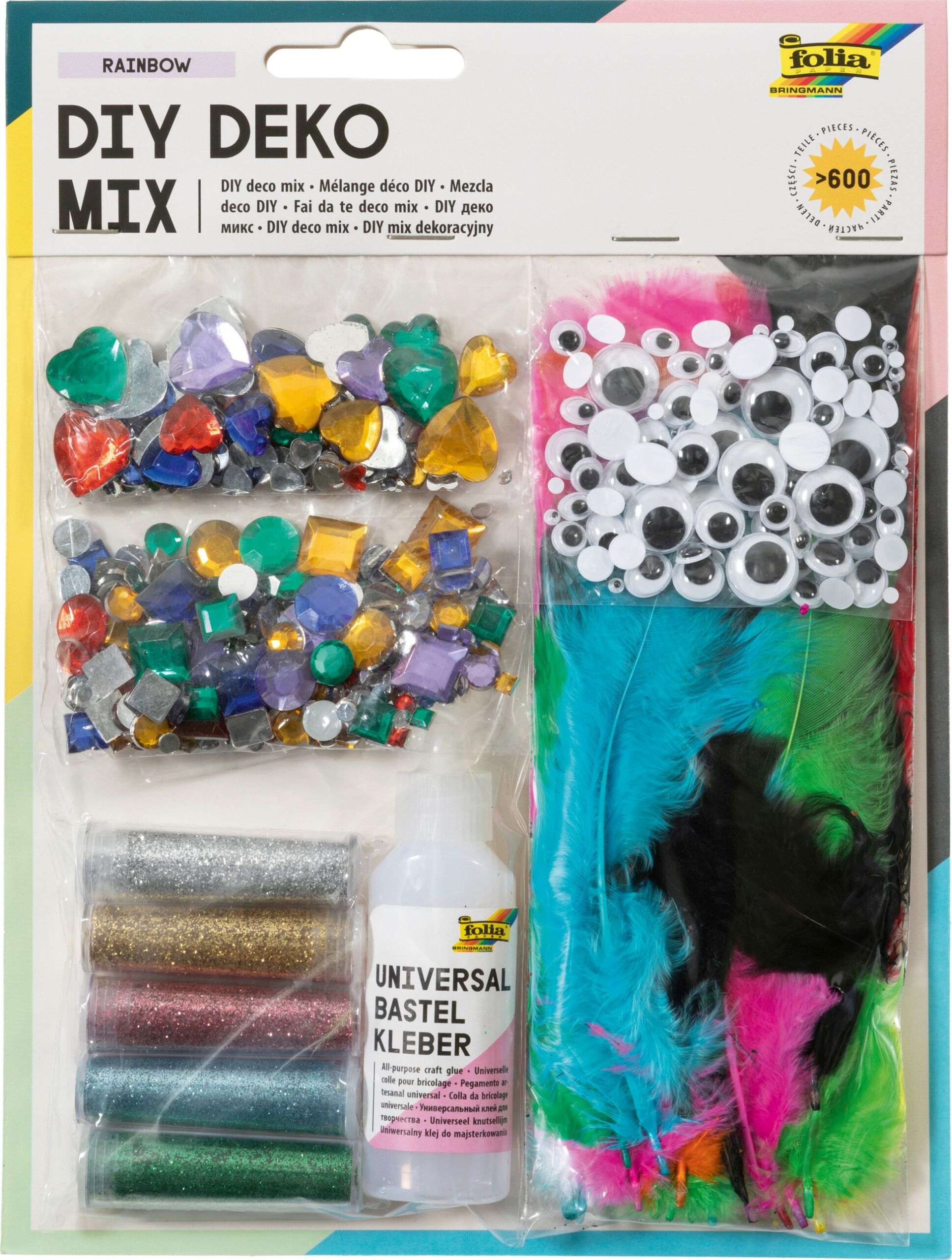 Dieses coole Deko Mix Bastelset von Bringmann ist super geeignet für die Verzierung deiner Grusskarten, diverse Bastelarbeiten oder Wohnaccessoires! Mit viel Zubehör, wie beispielsweise Schmucksteine, Herzen, Federn und Glitter kannst du tolle Kreationen zaubern und alles so verschönern, wie du es gerne hättest! Ganz egal welche Form und welche Farbe. Mit den vielen verschiedenen Accessoires ist für alles etwas dabei. Sei kreativ und entwickle tolle Ideen, wie du ganz alltägliche Dinge aufpeppen kannst!