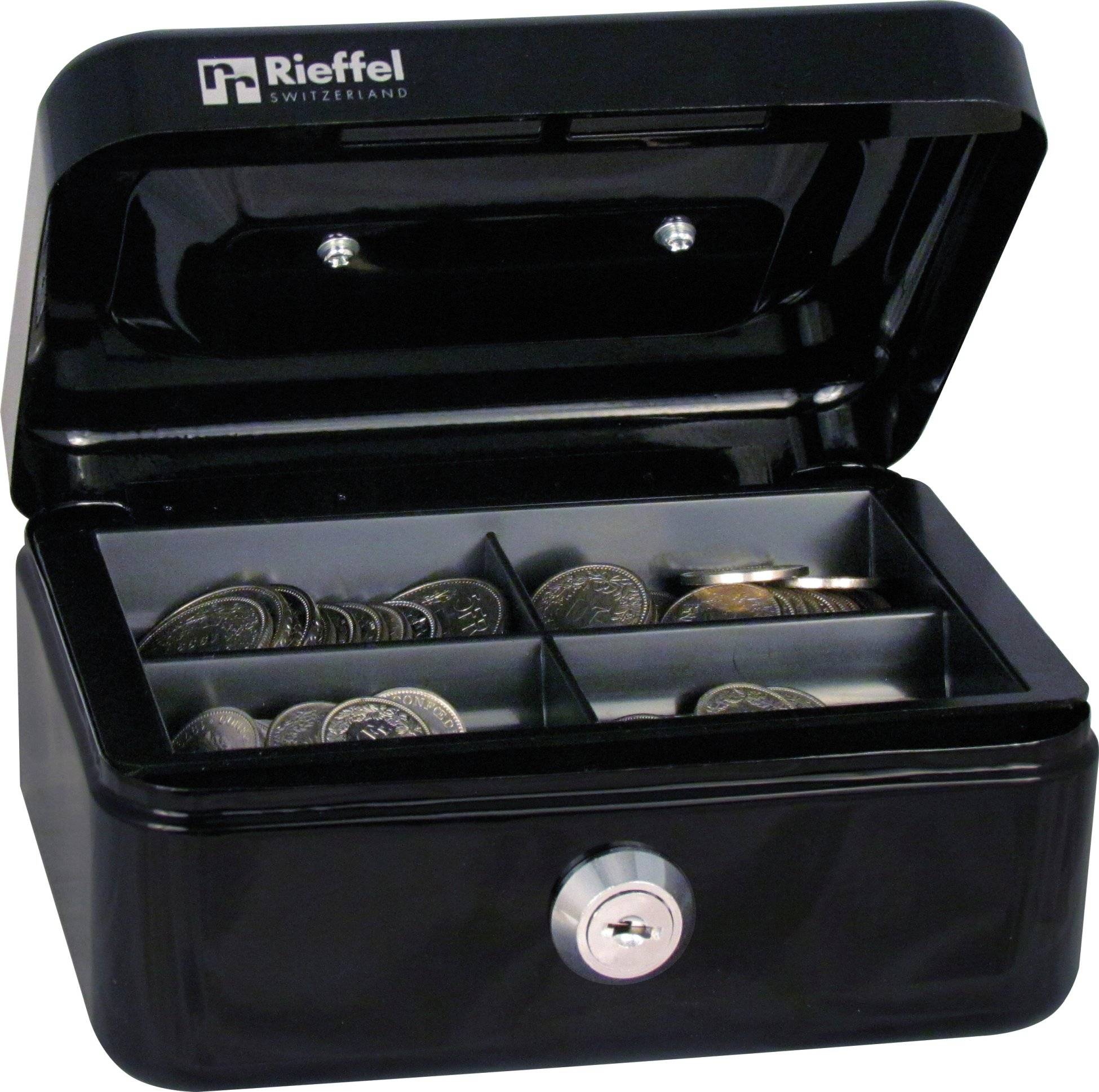 Die Geldkasse von RIEFFEL ist aus Stahlblech und hat ein Zylinderschloss mit 2 Schlüsseln. Der herausnehmbare Münzeinsatz kann so sicher verstaut werden.