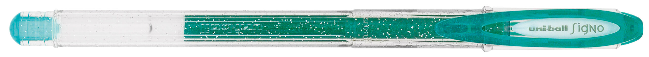 UNI-BALL Roller Signo Sparkling transparenter Kunststoffschaft, rostfreie Stahlspitze, Kappe mit Clip, Gel-Tintenroller mit Glitter, regelmässiger Tintenfluss, nicht nachfüllbar, Strichbreite ca. 0,65 mm. grün
