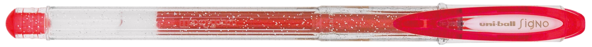UNI-BALL Roller Signo Sparkling transparenter Kunststoffschaft, rostfreie Stahlspitze, Kappe mit Clip, Gel-Tintenroller mit Glitter, regelmässiger Tintenfluss, nicht nachfüllbar, Strichbreite ca. 0,65 mm. rot