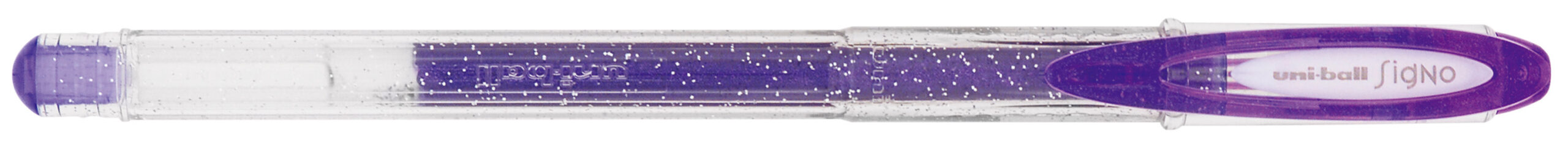 UNI-BALL Roller Signo Sparkling transparenter Kunststoffschaft, rostfreie Stahlspitze, Kappe mit Clip, Gel-Tintenroller mit Glitter, regelmässiger Tintenfluss, nicht nachfüllbar, Strichbreite ca. 0,65 mm. violett