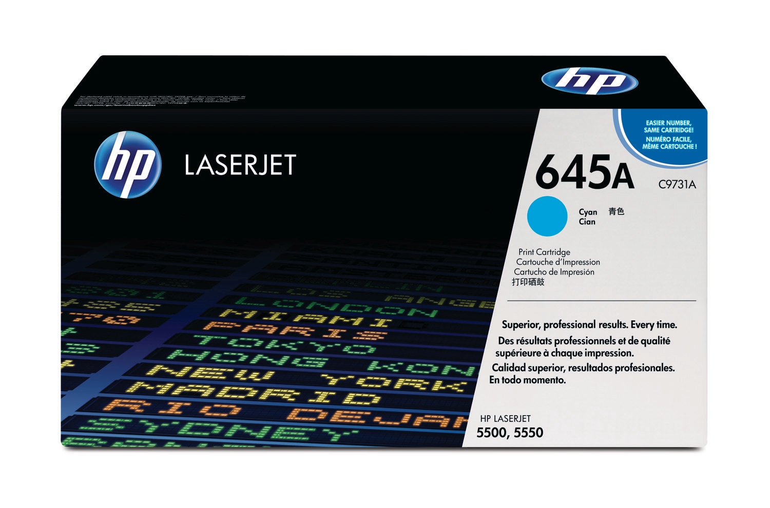 HP Toner für Color Laserdrucker/Multifunktionsgeräte Artikel Bezeichnung Kapazität Menge Toner cyan 645A ca. 12000 Seiten 1 Stk.