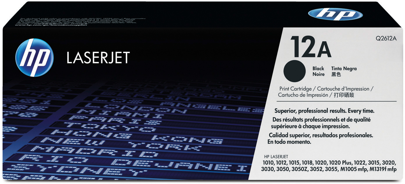 HP Toner für Mono Laserdrucker/Multifunktionsgeräte Artikel Bezeichnung Kapazität Menge Toner black 12A ca. 2000 Seiten 1 Stk.