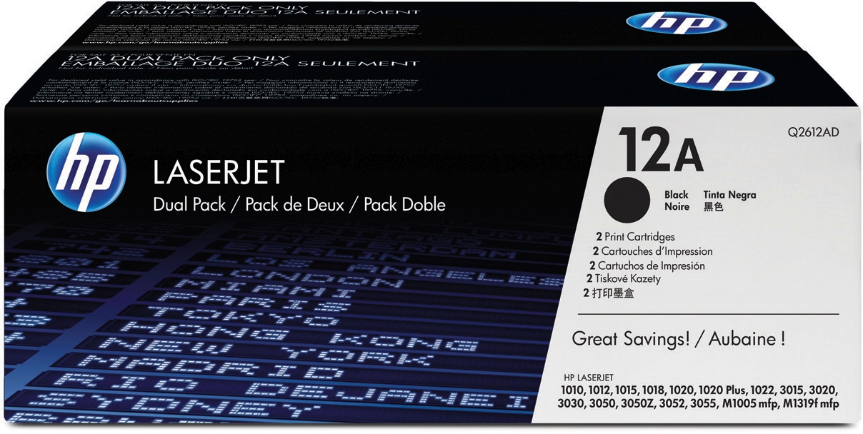HP Toner für Mono Laserdrucker/Multifunktionsgeräte Artikel Bezeichnung Kapazität Menge Toner black 12A ca. 2000 Seiten 2 Stk.