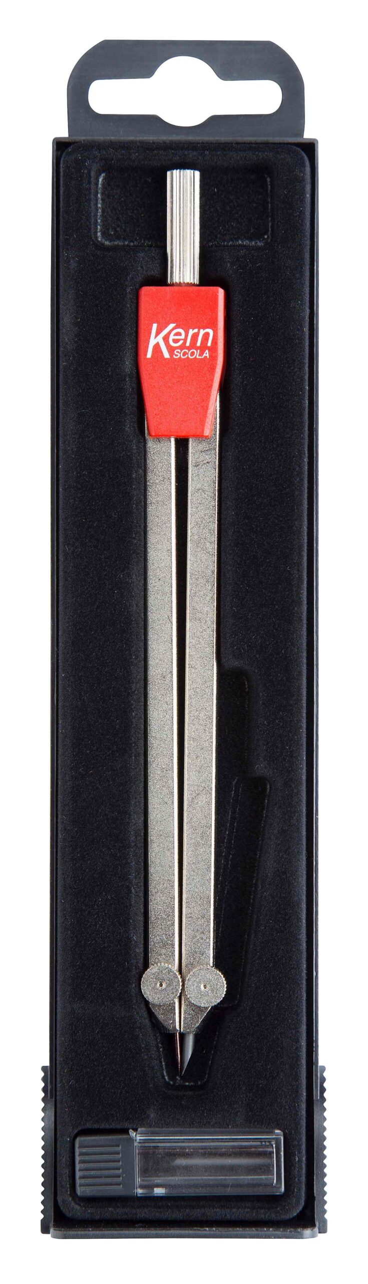 KERN(TM) SCOLA Bleiminenzirkel Arbeitsinstrument für Schule und Heim, Grundmaterial aus Messing, Oberfläche mattvernickelt, Basiszirkel Länge 150 mm, Zapfen Ø 3,5 mm, Radius bis 230 mm, 2 Ersatzminen und 1 Ersatznadel in Dose. Nachhaltigkeit eco:plus: zerlegbar konstruiert, verlängertes Produktleben.