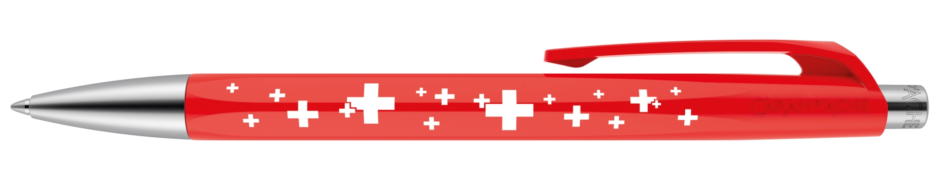 CARAN D’ACHE Kugelschreiber 888 Infinite Spitze und Knopf aus Metall, Schaft und Clip aus Kunstharz, Druckmechanik, Swissride®-Mine, Schreibfarbe blau, nachfüllbar. Schweizer Kreuze