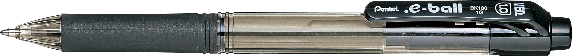 PENTEL Kugelschreiber e-ball transparenter Schaft, gummierte Griffzone, Clip, Druckmechanik, Schaft in der Schreibfarbe, nachfüllbar, Strichbreite 1 mm. Nachhaltigkeit eco:plus: recycelter Bestandteil, Recycelgehalt Abfall vor Gebrauch max. 78%. schwarz