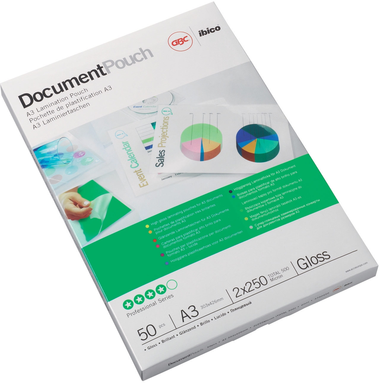 GBC® Laminierfolien in Premiumqualität auf 3 Seiten offen. Grösse A3, 303 x 426 mm 250 Micron 50 Stück