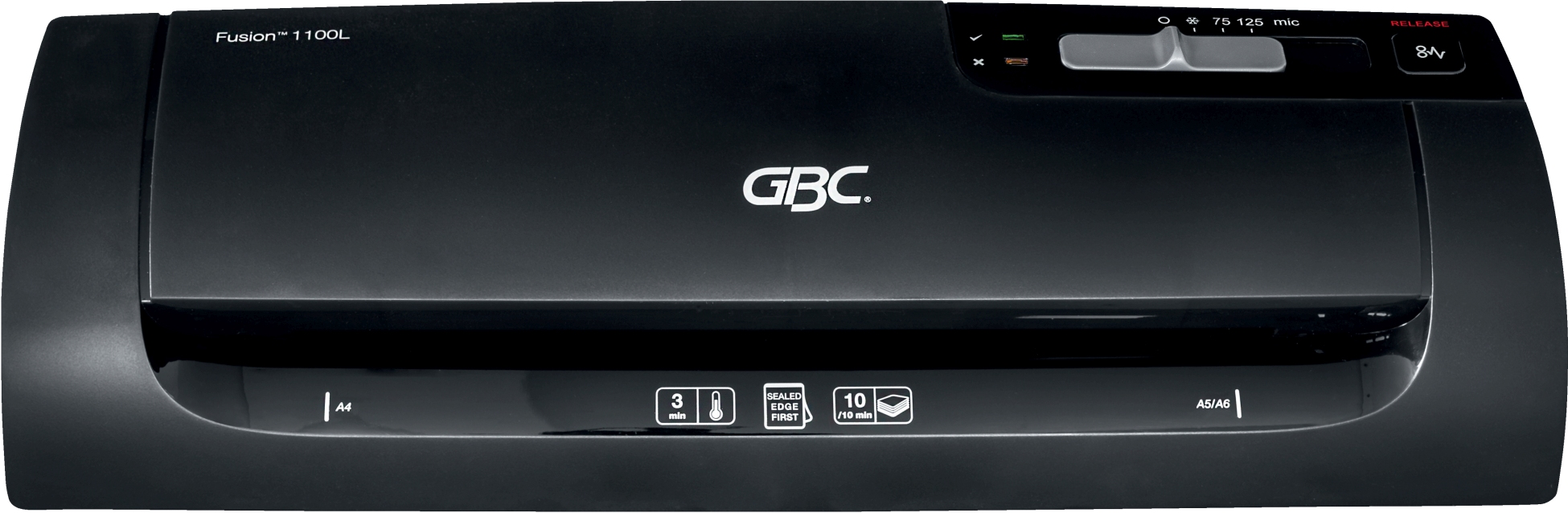 GBC® Laminiersystem Fusion(TM) 1100L A4 2-Rollen Laminator, laminiert bis zu einer Arbeitsbreite von 241 mm (A4), Aufheizzeit 3 Min., mit Einstellung für Kaltlaminiertaschen, LED-Anzeige, audiovisuelle Bereitschaftsanzeige, laminiert in nur 54 Sek. ein A4-Dokument, Wahl der Folienstärke über einen Schieber, Freigabetaste zur Entnahme fehleingezogener Laminate, laminieren ohne Carrier möglich, Folienstärken 75 – 125 Micron, automatische Abschaltung nach 30 Min. Nichtgebrauch. Masse: B 375 x H 80 x T 95 mm. Gewicht: 1,4 kg. Preis inkl. VRG. Zertifikat: CE, TÜV/GS.