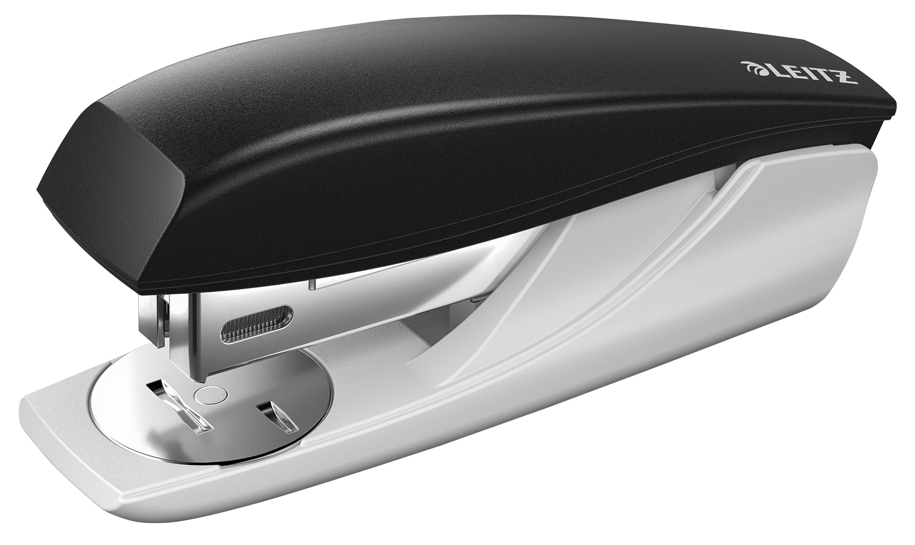 LEITZ® NeXXt Serie kleines Büroheftgerät 5501 ergonomische Form für gute Handhabung, Direct Impact Technology (DIT) für leichtes und fehlerfreies Heften, aus ABS mit Oberlademechanik, Drehamboss für offene oder geschlossene Heftung, Tackerfunktion, integrierter Heftklammernentferner, Heftkapazität ca. 2,5 mm (25 Blatt). Passende Heftklammern: 24/6 und 26/6 (Lieferung inkl. 200 Heftklammern). Garantie: 3 Jahre bei Verwendung von LEITZ® Heftklammern. Zertifikat: GS. schwarz