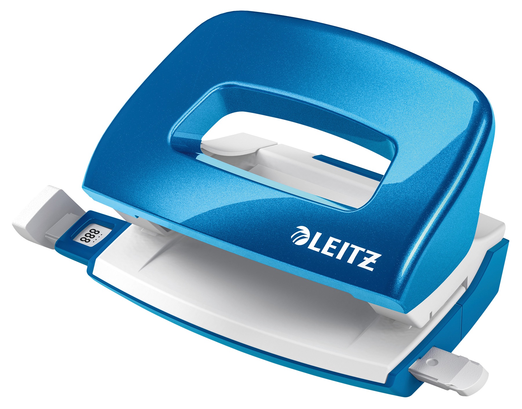 LEITZ® NeXXt Serie Mini-Locher (Metall) 5060 WOW Unterteil und Griff aus robustem Metall, für 8 cm Lochabstand, Loch Ø 5,5 mm, Anschlagschiene mit farbiger Bedruckung und Fenster, ultra-scharfe Lochstempel, ergonomisch geformter Griffbereich für komfortables Lochen in der Hand (keine Griffmulde), Stanzvermögen 1 mm (10 Blatt). Garantie: 10 Jahre. Zertifikat: GS. blau