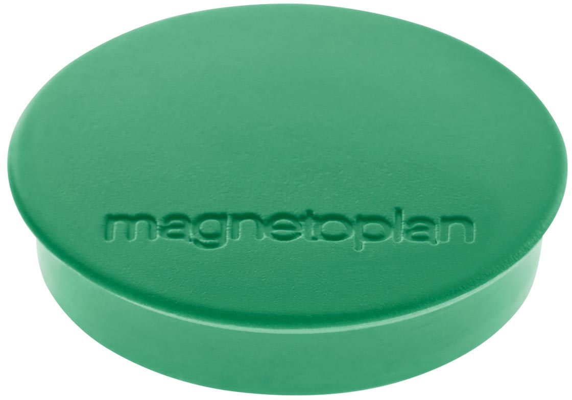 Magnet mit Vollkern-Ferrit-Ausstattung. Spezialbeschichtete Unterseite verhindert das Zerkratzen von Tafeln. Hochwertiger Kleber garantiert den festen Verbund mit der Kunststoffkappe des Magneten.