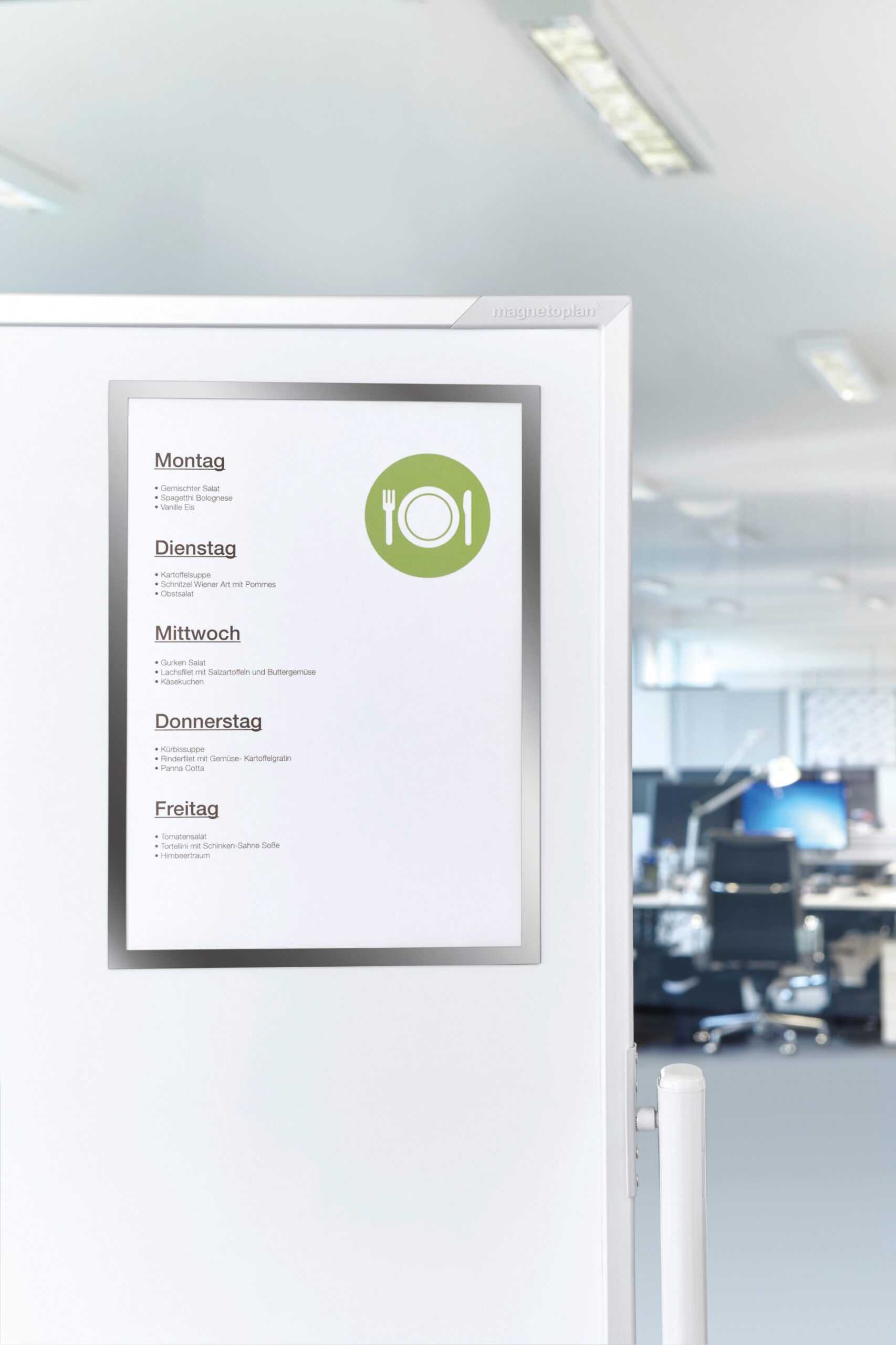 Farbiger Überschriften-Rahmen TOPSIGN in grau. Zum einfachen, flexiblen und übersichtlichen Beschriften magnetischer Tafeln in Büro, Lager und Fertigung. Ideal auch für Überschriften auf TQM-Infotafeln. Magnethaftend auf allen eisenhaltigen Oberflächen. Schnell und einfach auswechselbar.