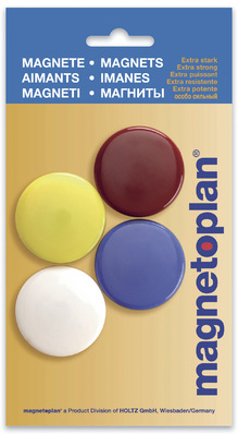 Die farbigen Signalmagnete sind praktische Helfer und setzen farbige Markierungen an jedem Whiteboard oder Plantafel.