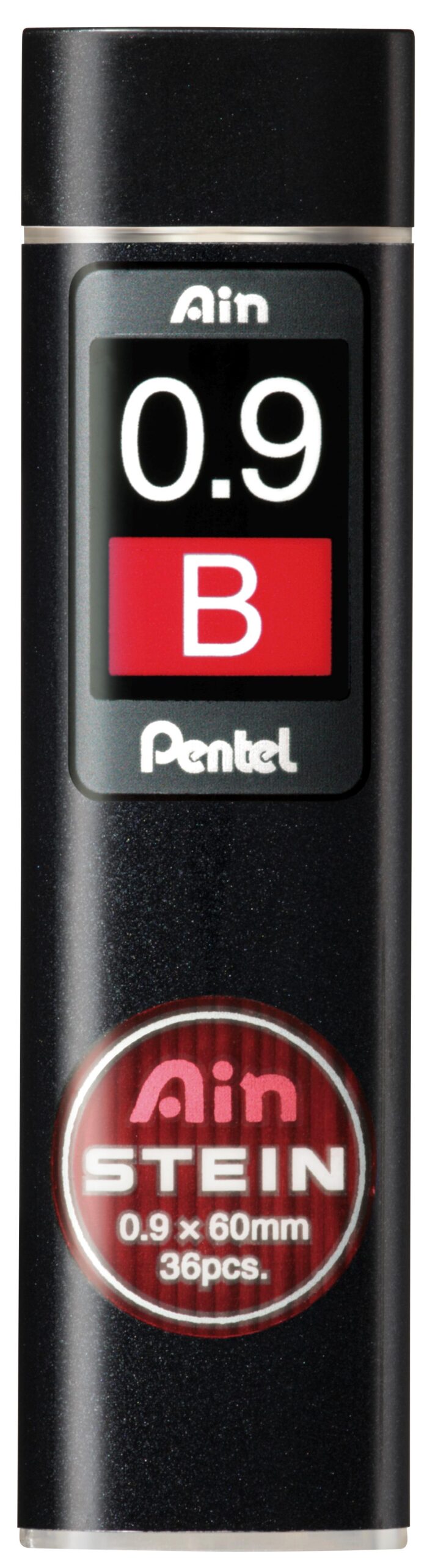 PENTEL Bleistiftminen AinStein in Dose aus ABS mit Drehverschluss und Sichtfenster, Länge 60 mm, dank Keramik-Zell-Struktur noch stärker und somit bruchfester, Wabensystem im Innern der Mine sorgt für äusserst hohe Belastbarkeit, härteste Mine der Welt. Nachhaltigkeit eco:plus: recycelter Bestandteil, Recycelgehalt Abfall vor Gebrauch max. 92%. Minen 0,9 mm Dose zu 36 Minen. B