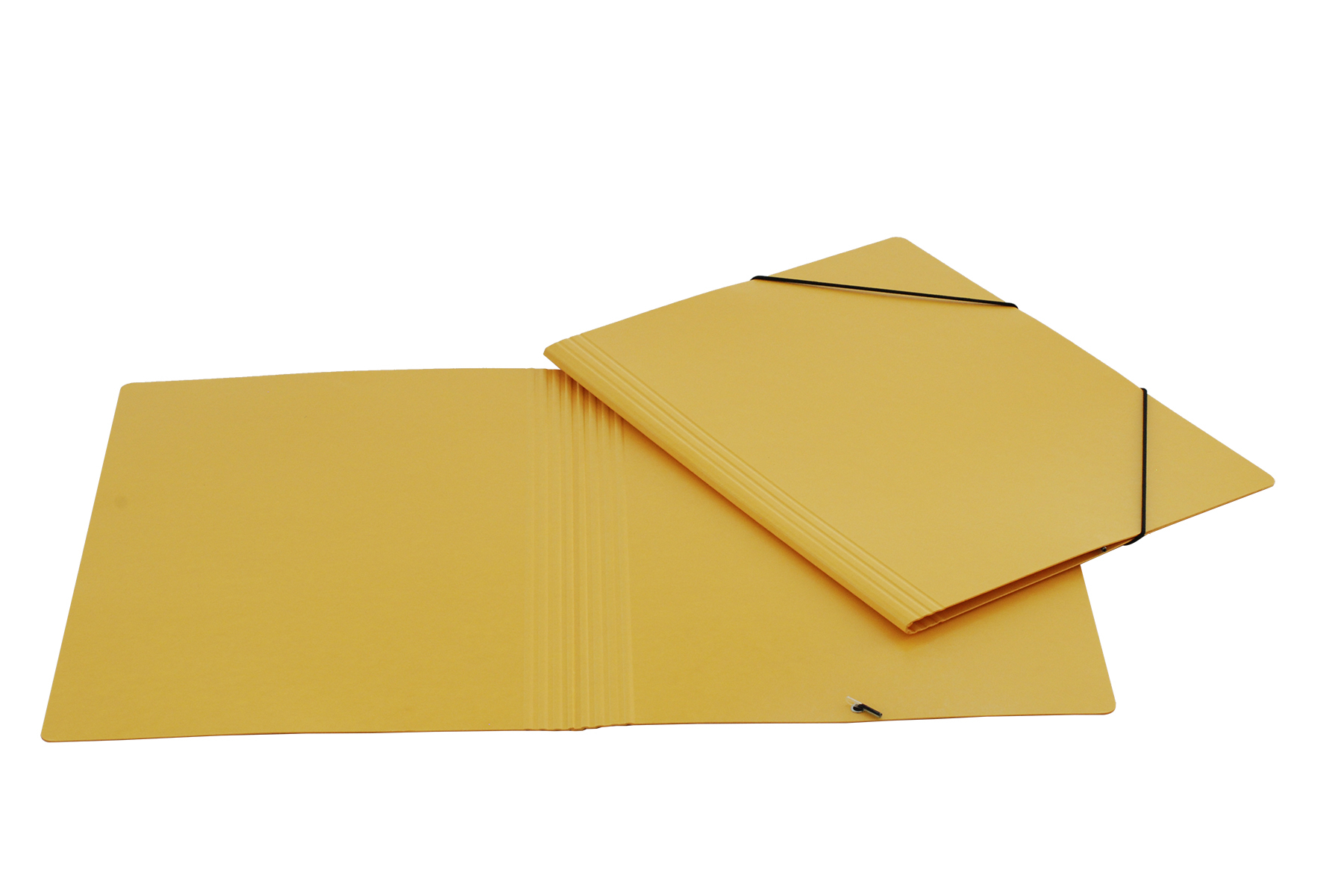 EROLA® Pressspan-Momentordner ohne Einschlagklappen aus Original Schweizer-Pressspan 0,8 mm, mit Gummibandverschluss, Fassungsvermögen 45 mm, für Format A4. Nachhaltigkeit eco:plus: recyclingfähig, umweltfreundliche Verpackung. gelb