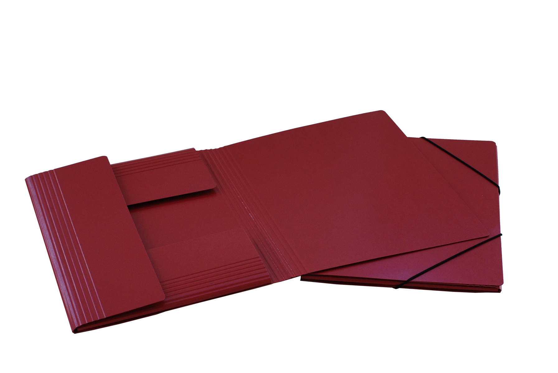 EROLA® Pressspan-Momentordner mit 3 Einschlagklappen aus Original Schweizer-Pressspan, mit Gummibandverschluss. Nachhaltigkeit eco:plus: recyclingfähig. Format A4, Pressspan 0,7 mm Fassungsvermögen 45 mm. rot