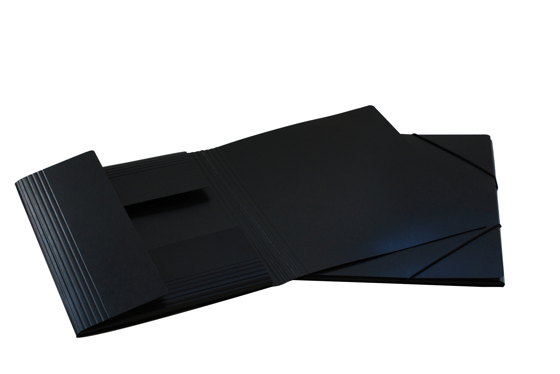 EROLA® Pressspan-Momentordner mit 3 Einschlagklappen aus Original Schweizer-Pressspan, mit Gummibandverschluss. Nachhaltigkeit eco:plus: recyclingfähig. Format A4, Pressspan 0,7 mm Fassungsvermögen 45 mm. schwarz