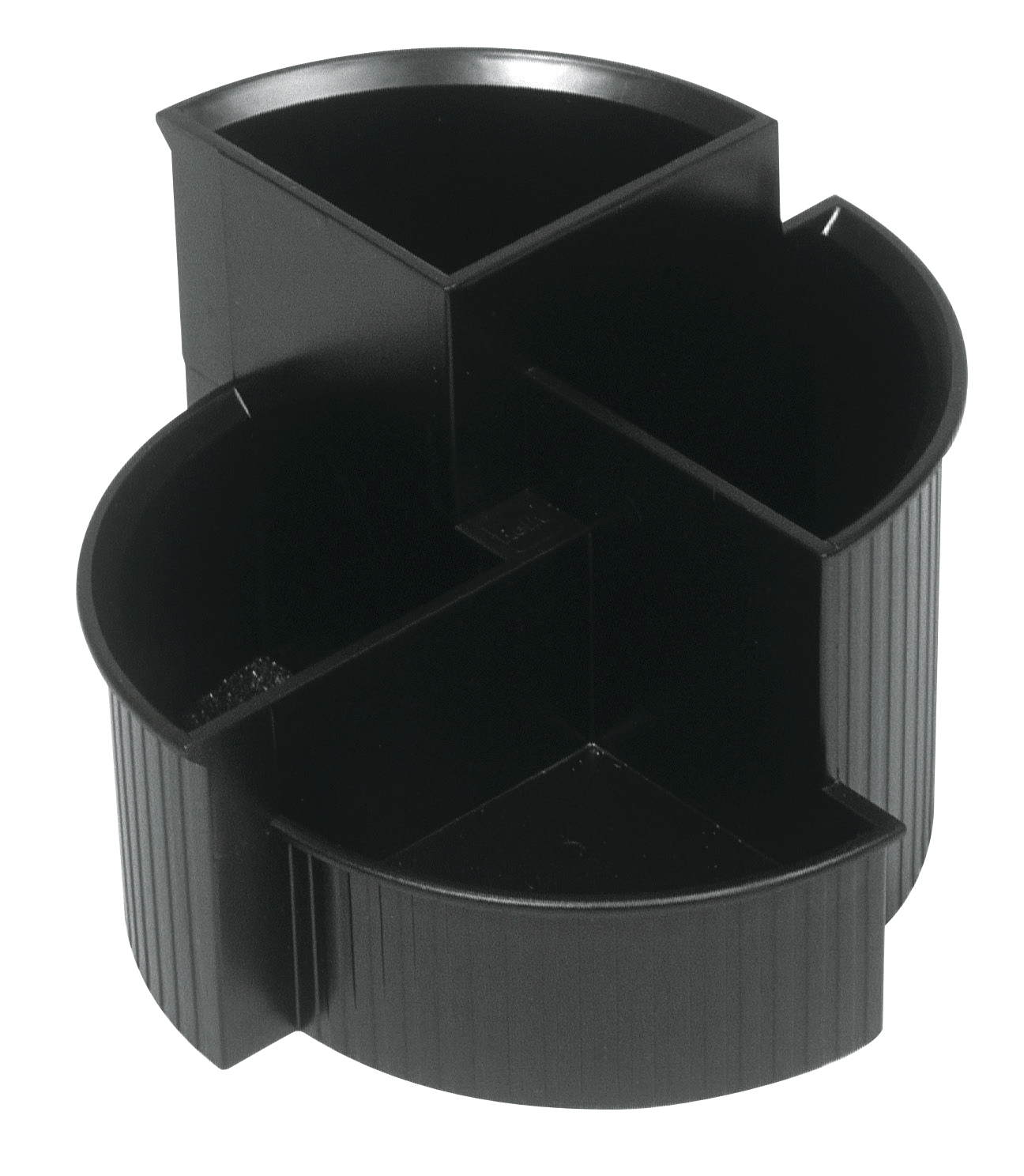 HELIT Multiköcher the hub line Linear aus PS, mit 4 Fächern, rutschfeste Gummifüsse. Masse: H 100 mm, Ø 140 mm. Nachhaltigkeit eco:plus: verlängertes Produktleben, recyclingfähig, Recycelgehalt Abfall nach Gebrauch max. 100%, Abfallminderung, umweltfreundliche Verpackung. schwarz