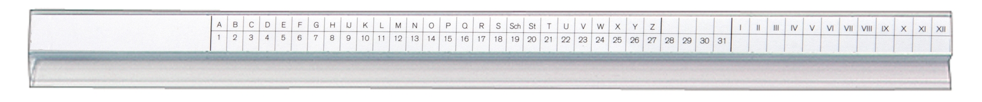 BIELLA ORIGINAL Hängemappen Organisations-Zubehör Organisations-Etiketten mit Druck beidseitig bedruckt, weiss, Format 320 x 14 mm, Streifen zu 10 Etiketten perforiert. Beutel zu 50 Stück. 1 – 31 A-Z