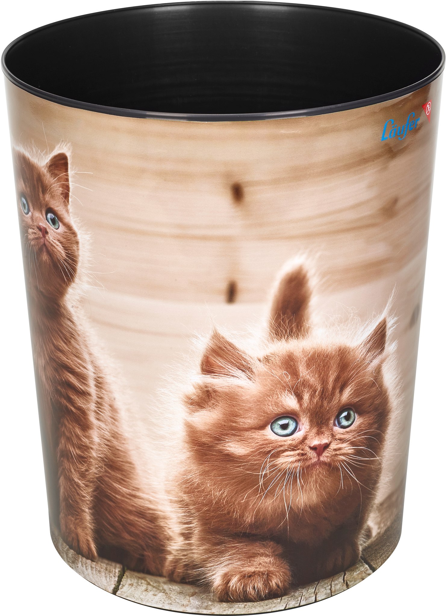 LÄUFER® Papierkorb Motiv aus Kunststoff, Inhalt 13 l. Masse: H 300 mm, Ø 245 mm. Neugierige Kätzchen