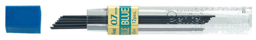 PENTEL Minen Hi-Polymer color in Kunststoff-Dose, Länge 60 mm. Dose zu 12 Minen. Nachhaltigkeit eco:plus: recycelter Bestandteil, Recycelgehalt Abfall vor Gebrauch max. 88%. Minen 0,7 mm blau