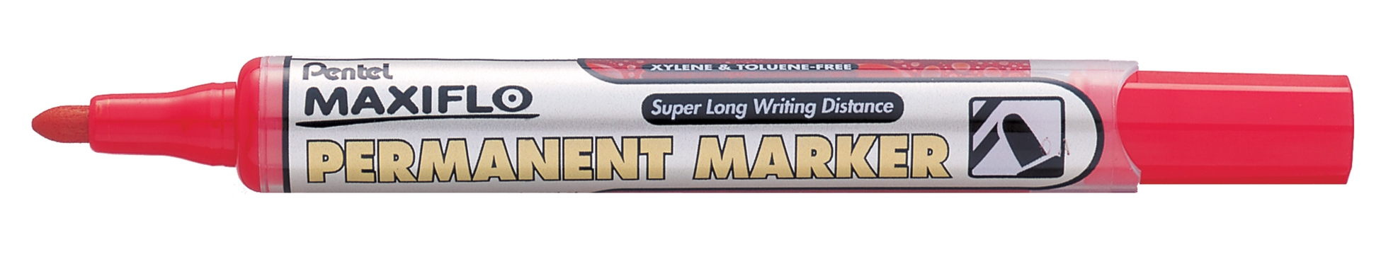 PENTEL Permanent Marker Maxiflo NLF50 konische Spitze, Druckknopfsystem, mit freifliessender, geruchsarmer Tinte, nicht nachfüllbar, Strichbreite ca. 4,5 mm. rot