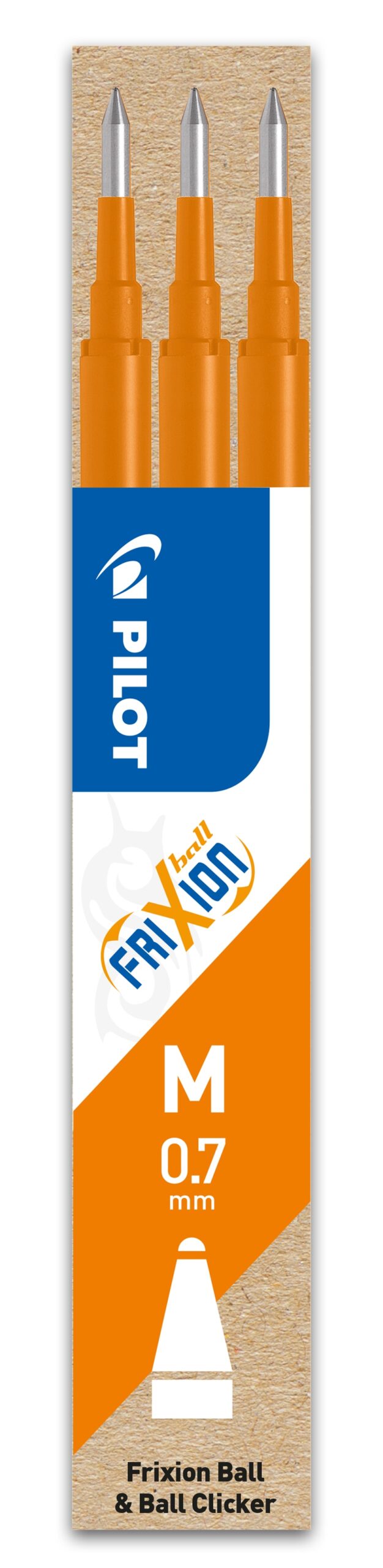 PILOT Rollerpatronen FriXion Ball, LX, Slim, Clicker Strichbreite 0,7 mm. Kartonetui zu 3 Stück. orange