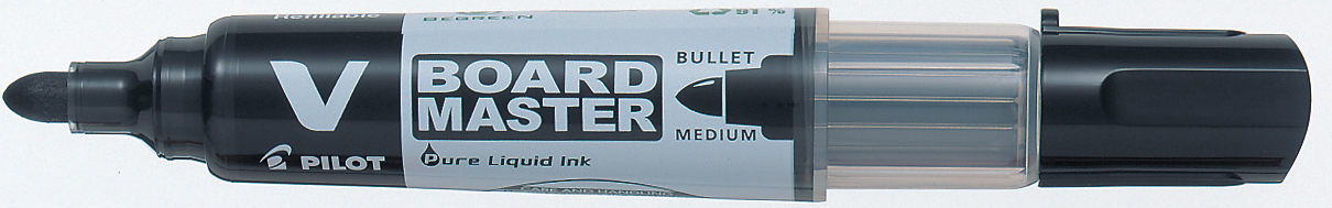Eine technologische Innovation ist der V-BOARD MASTER, ein Whiteboard-Marker mit nachfüllbarer Flüssigtinte. Das neue Nachfüllsystem der Tinte ermöglicht den sofortigen Start ohne Schütteln oder Pumpen und gewährt trotzdem einen konstanten Tintenfluss. Der V-BOARD MASTER begeistert durch seine Intensität und Farbhelligkeit. Dieses Schreibgerät gehört zum Begreen Sortiment und wurde aus recycelten Materialien hergestellt.