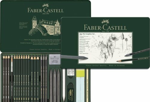Das Metalletui mit professionellem Anspruch . ein ausgewähltes Sortiment an Castell 9000 Bleistiften in den Härtegraden 2H. HB. B. 2B. 4B. 6B und8B. Castell 9000 Jumbo und Graphite Aquarelle Bleistiften in den Härtegraden 2B. 4B und 8B. Pitt Graphite Pure Stiften in den Härtegraden 3B. 6B. 9B. Pitt Graphite Kreiden in den Härtegraden 2B. 6B. 9B sowie Zubehörteilen . ideal geeignet für den mobilen Einsatz . Holz aus zertifizierter. nachhaltiger Forstwirtschaft.. Das PITT Graphite Sortiment bietet allen Kreativen eine reichhaltige Auswahl an Stiften und Kreiden in verschiedenen Härtegraden zum Skizzieren sowie zum grafischen und flächigen Arbeiten. Der grüne Bleistift von Faber. den schon van Gogh und Goethe lobend erwähnten. ist heute in unseren Alltag eingezogen. Die 16 unterschiedlichen Härtegrade reichen vom zarten Grauton bis zum tiefen Grafitschwarz und bieten dem Künstler eine grosse Variationsmöglichkeit. Die PITT Graphite Pure Stifte sind wahre Meister für kontrastreiches und grossflächiges Malen. Je nach Maldruck und Härtegrad ist die spontane Ausdrucksfähigkeit dieser puren Grafitstifte unübertroffen. Die PITT Graphite Kreiden sind ein ideales Arbeitsmedium für sehr grosse Skizzen und Flächen mit hoher Ergiebigkeit.. Zubehör Nein. Set Ja. Display Nein. Typ Andere. Minentyp 1.0 mmmm. Mit Radiergummi Ja. Mine Nein