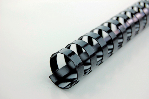 GBC® Plastikbinderücken rund aus PVC, US-Teilung 21 Ringe, für Format A4. Ø 12 mm, für 65 – 95 Blätter Packung zu 100 Stück. schwarz