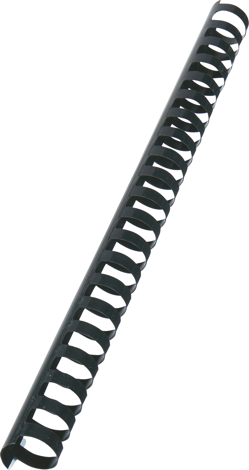 GBC® Plastikbinderücken rund aus PVC, US-Teilung 21 Ringe, für Format A4. Ø 22 mm, für 165 – 195 Blätter Packung zu 100 Stück. schwarz
