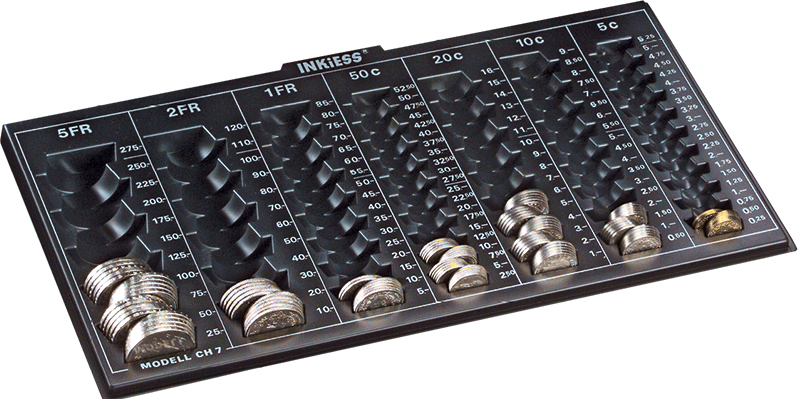 Mit dem Münzeinsatz von RIEFFEL halten Sie Ihr Wechselgeld in Ordnung und haben immer einen guten Überblick.